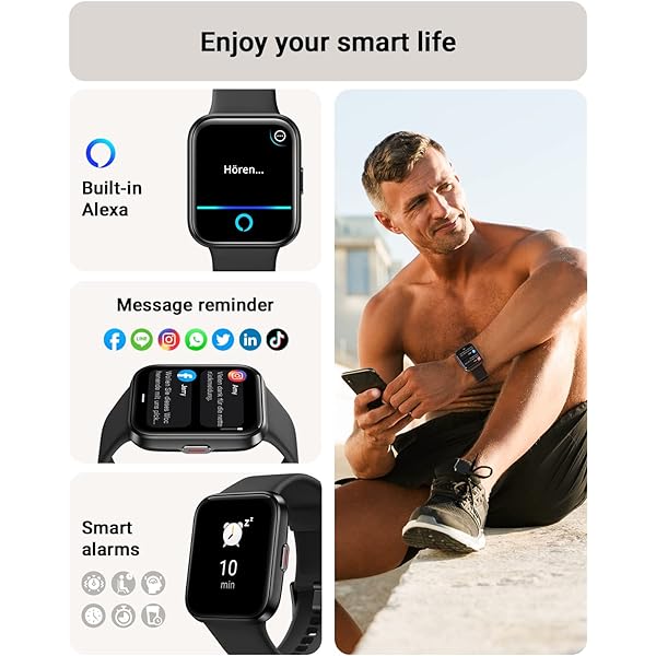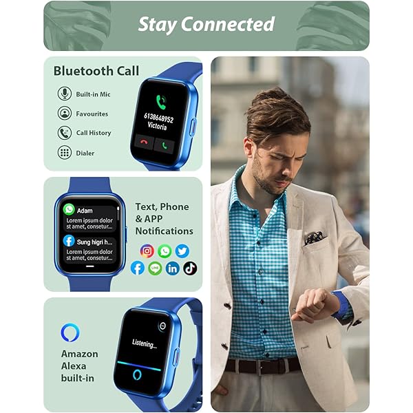【Call Receiving/Dialing & Alexa Built-in】Directly use the smart watch with text and call to make and answer calls through the built-in microphone. Stay connected to SMS and APP messages(Text, Facebook, WhatsApp, Instagram, Twitter, etc.), never miss any important information. Amazon Alexa on your smartwatch for men frees your hands from your phone. Ask questions, control music playback, check weather, set alarms, timers, and more just by speaking to your watch.