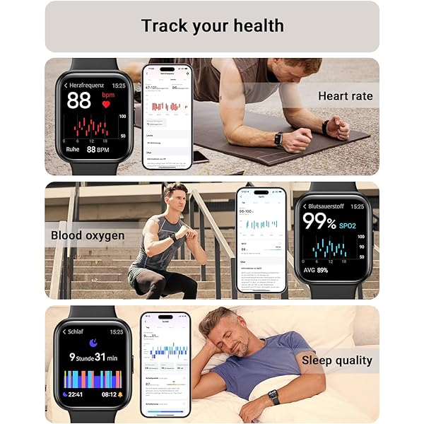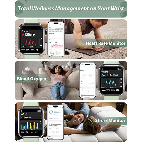 【24/7 Accurate Health Monitoring】Smart watch for android phones with advanced sensors provide insights to help you better understand your health and make a reasonable adjustment on your lifestyle. Keep an eye on your health metrics (heart rate, blood oxygen, sleep and stress level), as well as recording female menstrual period. And it will monitor your sleep status automatically and provides comprehensive sleep quality analysis (deep sleep, light sleep and awake), better sleep starts here.