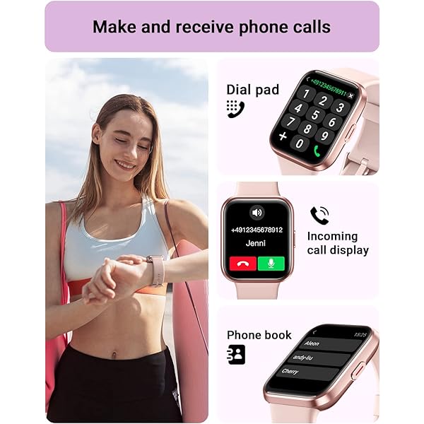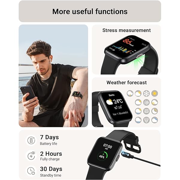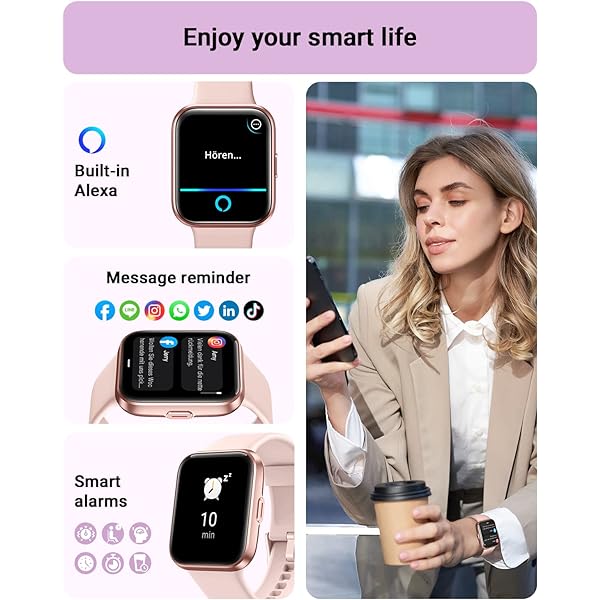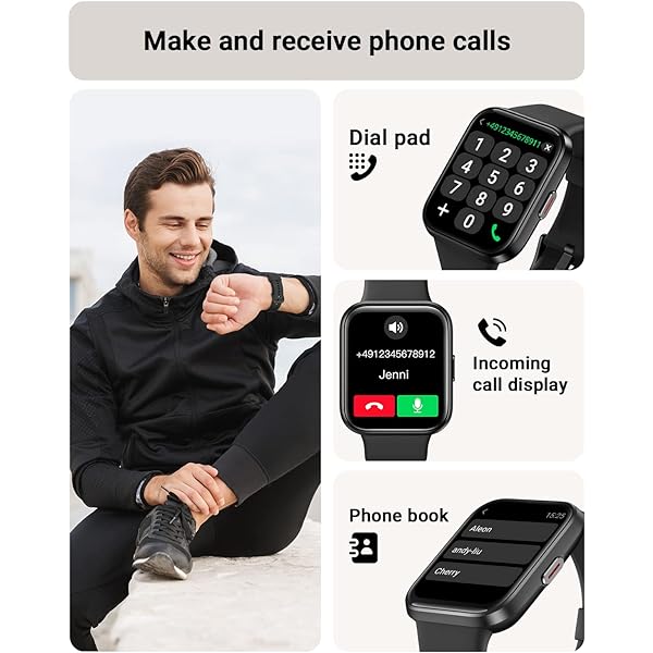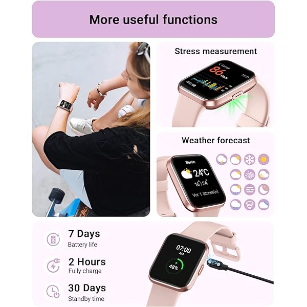 【Smart Life Partner & DIY Background】Multi-functional Smart Watch with 1.8"HD Extra-large full touch screen brings you a unique visual and better interactive experience. You can upload your favorite pictures as your watch faces. It contains many daily useful tools, such as Noise monitoring, Message reminder, Weather forecast, Music control, Stress monitoring, Setting alarms, Stopwatch, timer, Sedentary reminder, Breather guide, Raise to wake, Find phone, adjustable brightness and more.