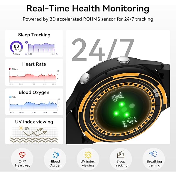Multi-Functional Sports Tracking & Health Monitoring: Supports over 100 sports modes including running, cycling, swimming, and more. Real-time tracking helps you reach your fitness goals. Built-in high-precision sensors monitor heart rate and blood oxygen levels, providing 24/7 health monitoring to keep your well-being at its best.