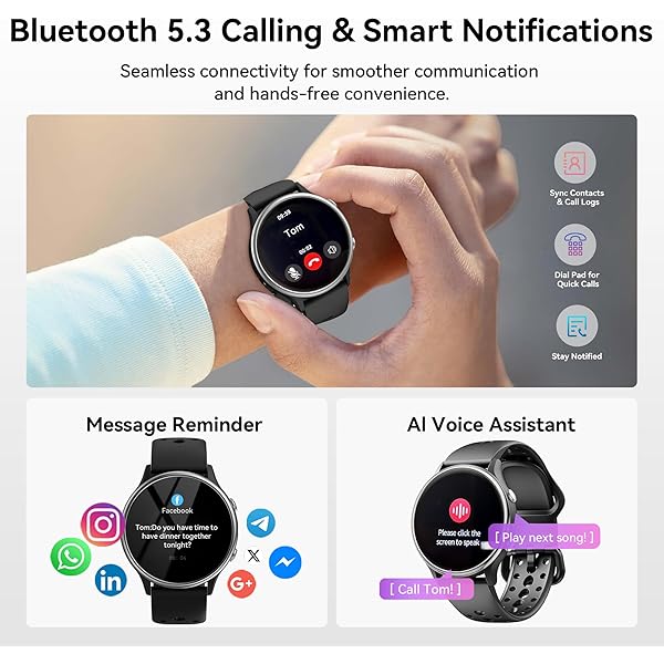 Smart Notifications & Bluetooth Calling: Stay connected on the go with smart notifications and Bluetooth calling. Sync your smartwatch with your phone to receive call, SMS, and app notifications directly on your wrist. The built-in Bluetooth call feature allows you to answer calls without needing to reach for your phone.